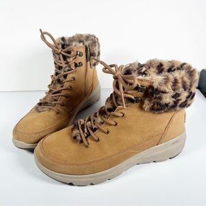 SKECHERS On-The-Go Glacial Ultra Wild One Cheetah Chestnut Boots Womens 7