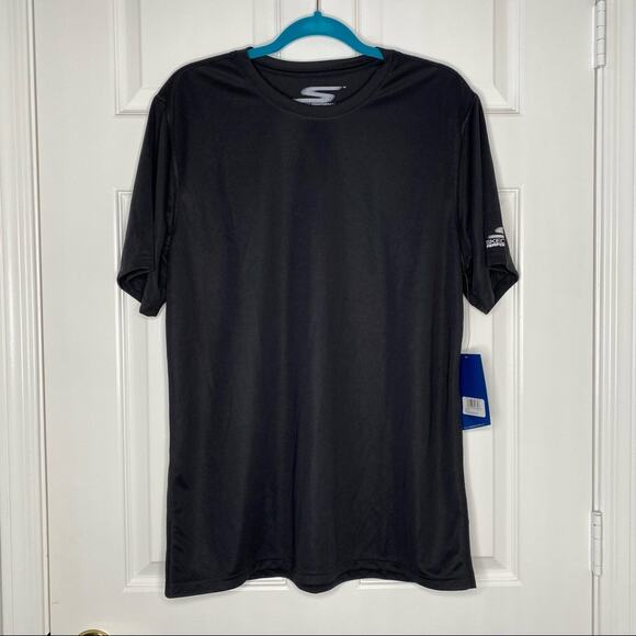Men’s Skechers bold black event SS Tech size large. Moisture wicking Athletic gym performance T shirt.