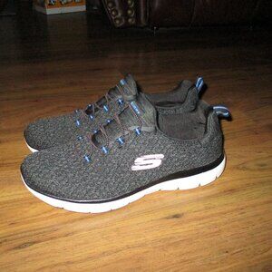 Skechers Summit Quick getaway gray with blue and pink accents excellent condition Sz 9.5.