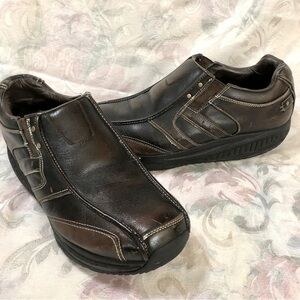 SKECHERS Shape-Ups 'Strider' Distressed Brown Leather Toning Sneakers Shoes 12 W