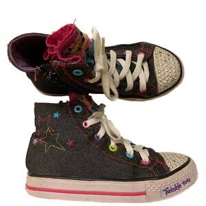 Title: Skechers Twinkle Toes "I Light Up" Neon Glitter & Stars Lace Side Zip Hi-Tops