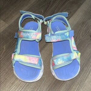 SKECHERS U LIGHTS Tie Dye Multicolor Strap Sandal Sz 3 Big Girls