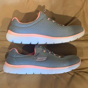 SKECHERS WOMEN'S WIDE FIT SNEAKERS, SUMMITS #12980W, GRAY/PINK, SIZE 7.5, VGUC