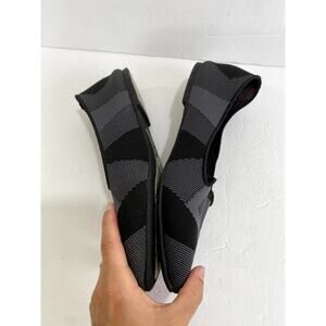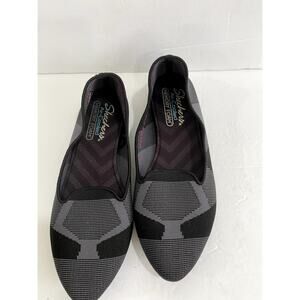 SKECHERS Women 9 Black Gray Textile Flat Ballerina Shoe Memory Foam