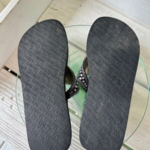 SKECHERS, YOGA FOAM, BLACK, CALI VINYASA-STONE CANDY SANDAL WITH SPARKLING RHINESTONE DETAIL. LOW WEDGE THONG SANDAL. IN GOOD CONDITION. SIZE 9