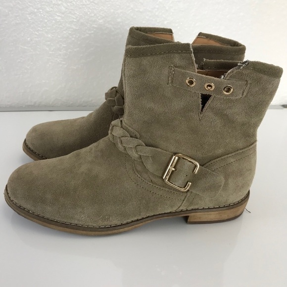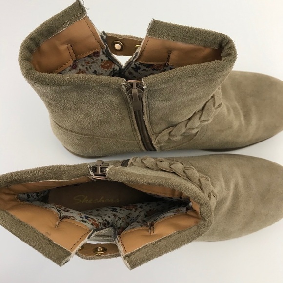SKECHERS ankle block heel boots 8 womens beige sage suede leather western Boho
