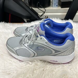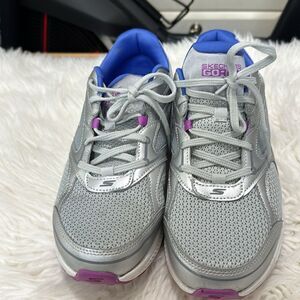 SKECHERS GO RUN SNEAKERS .size 9 color gray and purple good condition smoke free home