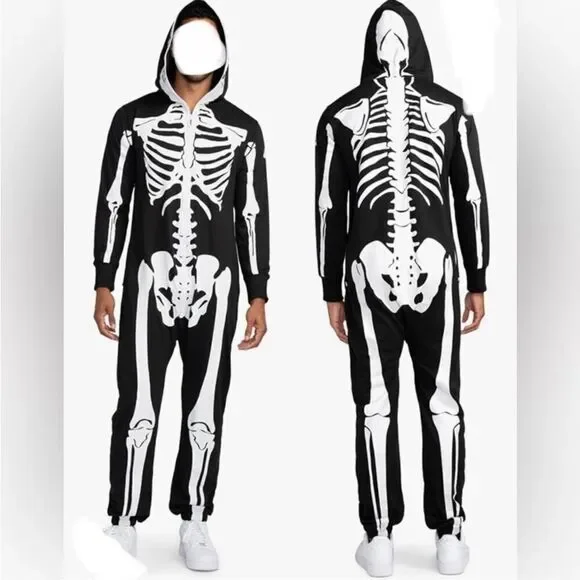 SPACIOUSLY SPOOKY Our Skeleton Costume Jumpsuit for Halloween will have you feeling and looking your very best for any spooky occasion. Whether you want to wear it for a party or stay comfy while trick or treating, the men's skeleton jumpsuit adds some easy extra fun to your Halloween.
