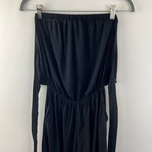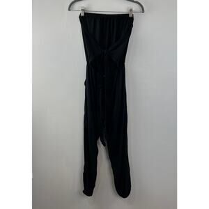 SKEMO Basics Black Strapless Jumpsuit Tie Back Elasticized Leg Cuffs Size XS