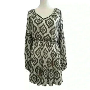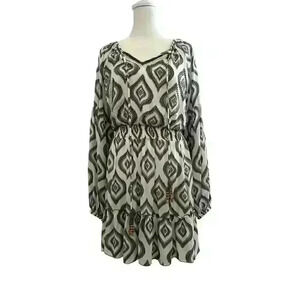 SKEMO NWOT Java Montana Short Dress Design Print Beaded With Elastic Waist Sz S