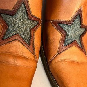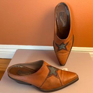 SKETCHERS - Leather Y2K Western Boot Slides with denim star detail - Size 8