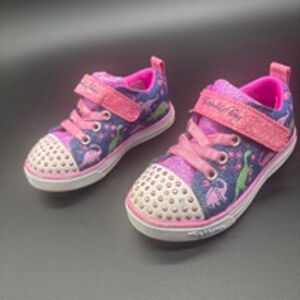 SKETCHERS Twinkle Toes Sneakers Size 8C Blue Pink Dinosaur
