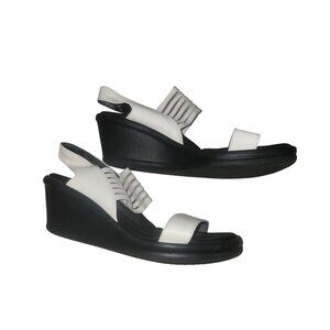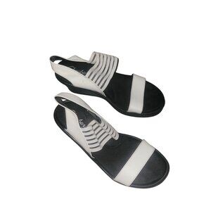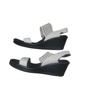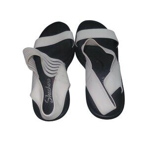 SKETCHER'S Womens White Wedge Sandals Striped Elastic Detail beach coastal comfy