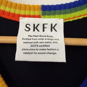 Unleash your playful side with this mid-length dress made of comfy organic cotton knit. Its deep V-neckline is trimmed with a pop of color in ribbed knit.