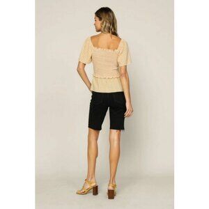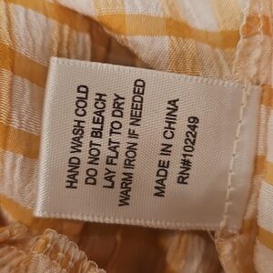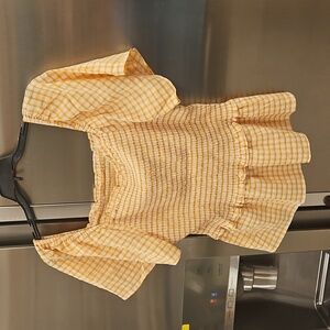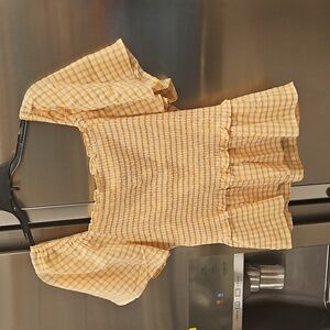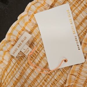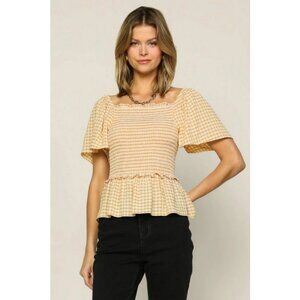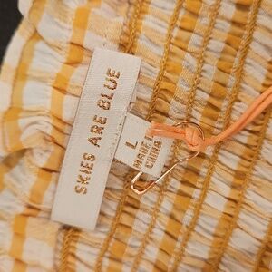 💕SKIES ARE BLUE💕 Checkered Smocked Top Yellow Mustard Gingham Print Large NWT