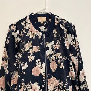 SKIES ARE BLUE STITCH FIX ANTHROPOLOGIE Flower Printed Bomber Jacket Navy Floral