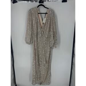 SKIES ARE BLUE Sequin Wrap Long Sleeved Jumpsuit in Champagne
