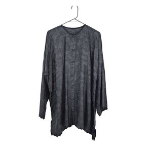 Women's Textured Peasant Style Button Front Tunic Top from SKIF in Gray.