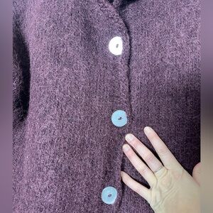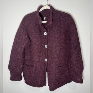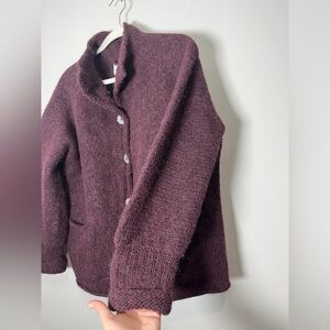 Heavy thick knit oversized cardigan. Brand is known for its hand knitted pieces. Size and materials tags have been removed. Please see lie flat measurements to confirm fit for you. Material feels to be wool and probably alpaca blend. Oversized buttons add an artsy feel. Back pleats may have been added post production, I'm unsure. Easily removed.