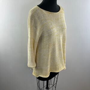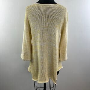 SKIFO SKIF White Yellow Knit Rolled Hem 3/4 Sleeve Pullover High Low Sweater