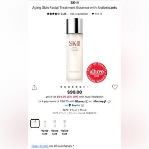 SK-II Aging Skin Facial Treatment Essence with Antioxidants. 2.5 oz/75 ml. Brand new, unopened, has seal on the bottle.