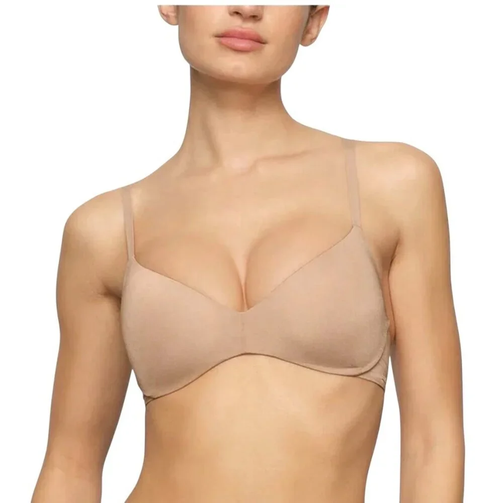 SKIMS 32DDD Wireless Form Push Up Bra Clay T-Shirt Minimalist Comfort