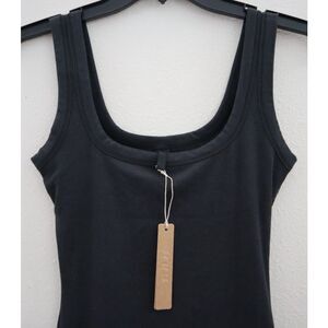 SKIMS AP-BSS-1490 Women's Sz S Soot/Black Cotton Rib One-Piece Bodysuit