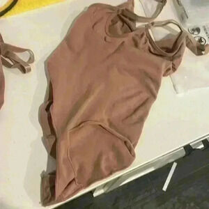 SKIMS Tan Adjustable Straps Seamless Sculpt Compression Thong Bodysuit Size S/M