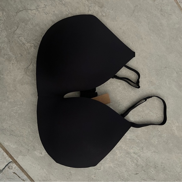 Sleek black SKIMS garment. Features adjustable straps.