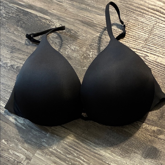 Chic black bra with subtle logo detail. Sleek and stylish design.