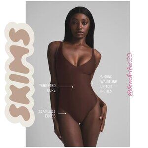 New without tags SKIMS Body Core Sculpt Plunge Thong Bodysuit in color Sand size 4XL. SNATCHES YOU IN, SUPPOSED TO MAKE WAIST TWO INCHES SMALLER. CULT FAVORITE.
