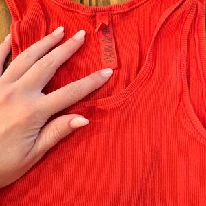 Striking red ribbed set from SKIMS. Ideal for everyday comfort.