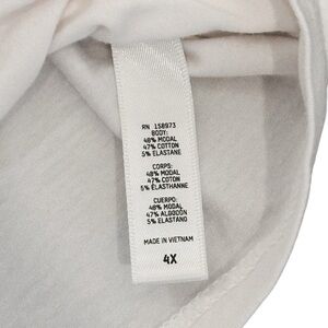 This SKIMS Plus Size Boyfriend Crop Sleeveless Relaxed Fit Tank Top in Marble (Cream/Off-White) is a Women’s 4X. It measures approximately 27” pit to pit and 18.5” collar to hem, and is in great pre-owned condition!
