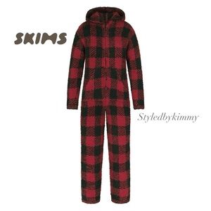 SKIMS COZY KNIT UNISEX ONESIE NWT NEW Brick Buffalo Check L/XL