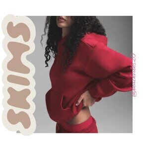 Brand new with tags SKIMS Cotton Fleece Classic Hoodie in the color Brick size Large. BRICK IS BRIGHTER COLOR THAN MERLOT. GREAT FOR THE HOLIDAYS AND WINTER. COLOR NOT SOLD ANYMORE ON SKIMS!!