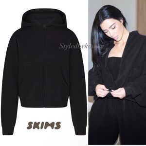 SKIMS Cotton Fleece Classic ZIP UP HOODIE Onyx Black M Medium NWT NEW