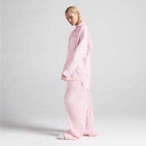 SKIMS Cotton Poplin Button Up Shirt Collared Baby Pink Oversized Sleep Shirt