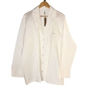 SKIMS Cotton Poplin Sleep Shirt Spa Button Up Long Sleeve Snow Logo White NWT 2X