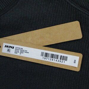 SKIMS Cotton Rib Short Sleeve Top Womens Medium Soot Black Padded Shoulder NWT