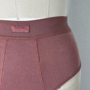 SKIMS Cotton Ribbed High Waist Elastic Band Patch Logo Panty