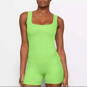 SKIMS neon green Romper, this is the Kylie Jenner Style which is now discontinued.