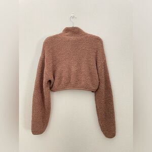 SKIMS Cozy Knit Boucle Cropped Mock Neck Zip Pullover in Rose Clay Small Medium