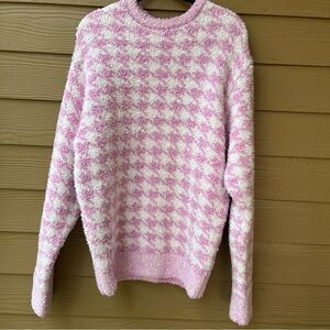 SKIMS Cozy Knit Crew Pullover in Petal Houndstooth Size L/XL
