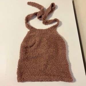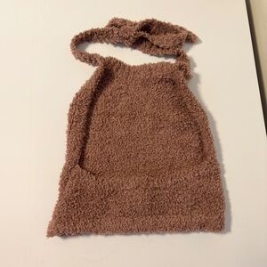 SKIMS Cozy Knit Lounge Plush Sherpa Halter Bra Crop Top with Open Back Tie in Rose Clay Brown and Womens Size S / M. Brand new with tags.