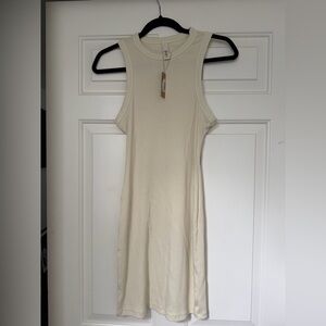 Elegant cream ribbed mini dress by SKIMS. Perfect for any occasion. Soft and comfortable.