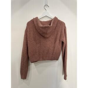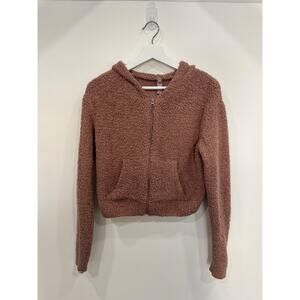 SKIMS Cropped Cozy Knit Bouclé Zip Up Hoodie in Rose Clay