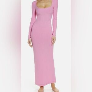SKIMS Dress Soft Lounge Ribbed Maxi in Bubble Gum Pink