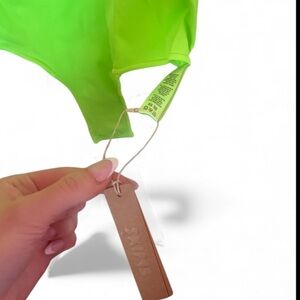 SKIMS ESSENTIAL LONG SLEEVE SCOOP NECK BODYSUIT | NEON GREEN / XXS/XS