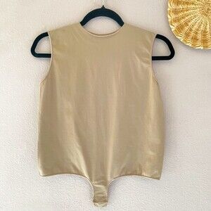 -"This crew neck sleeveless bodysuit lightly contours your body while being comfortable for all-day wear. Features a raw cut neckline, double snap closure at the bottom gusset, and a thong back for no panty lines"