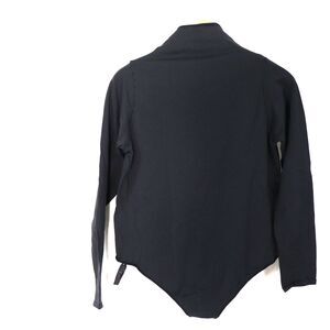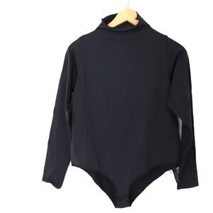 This long sleeve mock neck bodysuit has a comfortable second-skin fit and perfectly smooths and contours for a flattering look. Features a raw cut neckline, double snap closure at the bottom gusset, stretch satin stitching at the leg and arm openings, and a brief back for moderate coverage. Fits true to size.